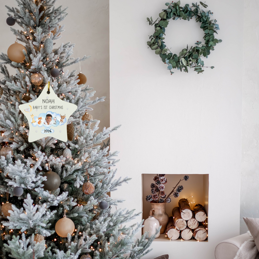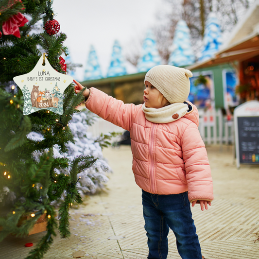 Personalized Baby's First Christmas (Woodland Animals) Star Ornament