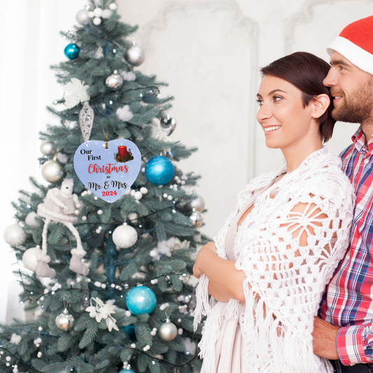 Personalized Our First Christmas as Mr. & Mrs. (Candle) Heart Ornament