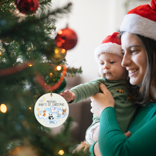 Personalized Baby's First Christmas (Woodland Animals) Circle Ornament