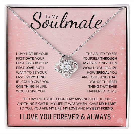 To My Soulmate | I Want to be Your Last EVERYTHING | Love Knot Necklace - Gift for Wife, Fiancée, Girlfriend