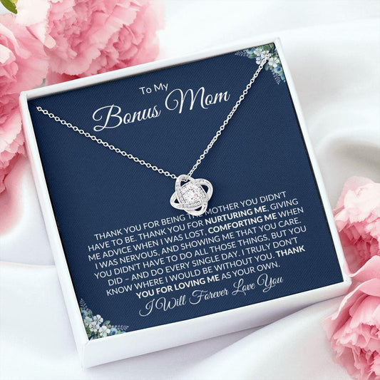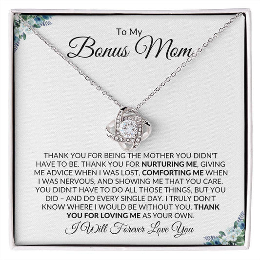 To My Bonus Mom | Thank You for Loving Me | Love Knot Necklace - Gift for Mother's Day, Birthdays, Holidays