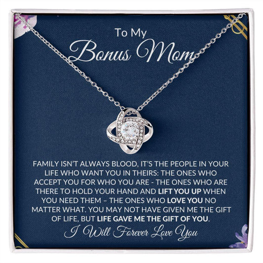 To My Bonus Mom | Life Gave Me the Gift of You | Love Knot Necklace - Gift for Mother's Day, Birthdays, Just Because, Holidays