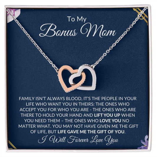 To My Bonus Mom | Life Gave Me the Gift of You | Interlocking Hearts Necklace