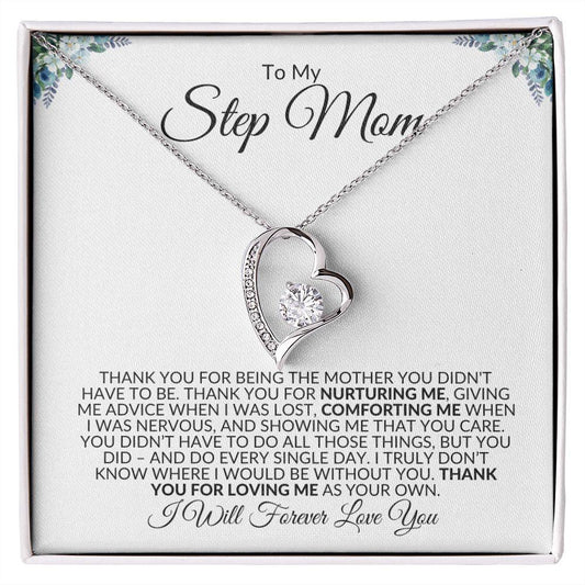 To My Step Mom | Thank You for Loving Me | Forever Love Necklace - Gift for Mother's Day, Birthdays, Holidays