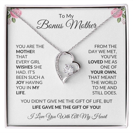 To My Bonus Mother | Life Gave Me the Gift of You | Forever Love Necklace - Gift for Mother's Day, Birthdays, Holidays