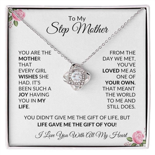 To My Step Mom | Life Gave me the Gift of You | Love Knot Necklace - Gift for Mother's Day, Birthdays, Holidays, Just Because