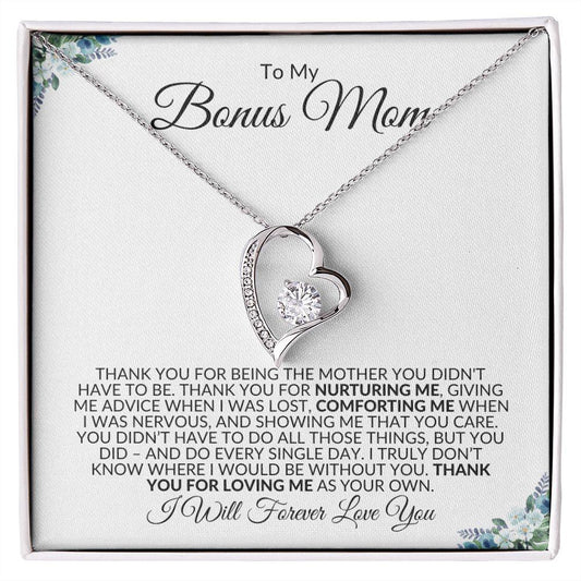 To My Bonus Mom | Thank You for Loving Me | Forever Love Necklace - Gift for Mother's Day, Birthdays, Holidays