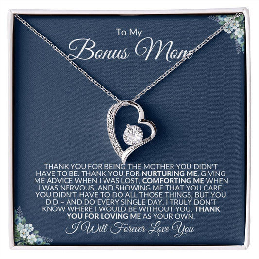 To My Bonus Mom | Thank You For Loving Me | Forever Love Necklace | Gift for Mother's Day, Birthdays, Holidays