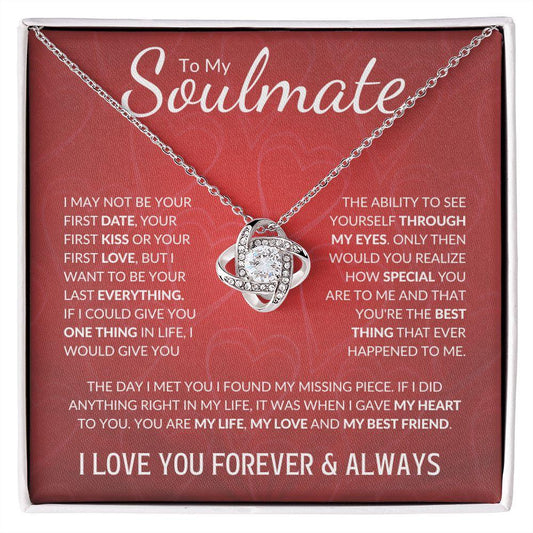 To My Soulmate | The Love of My Life, My Everything | Love Knot Necklace - Gift for Wife, Fiance, Girlfriend