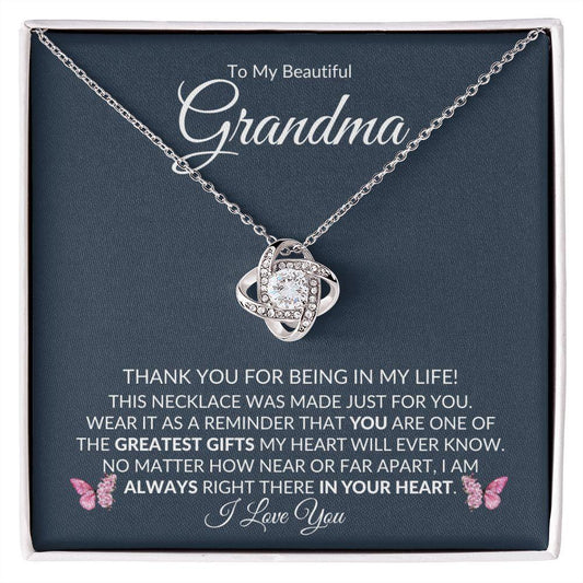 To My Beautiful Grandma | Always In Your Heart | Love Knot Necklace - Gift for Mother's Day, Birthday, Holidays