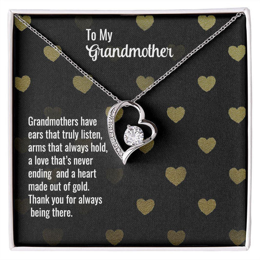 To My Grandmother | Heart of Gold | Forever Love Necklace - Gift for Mother's Day, Birthdays, Holidays, Just Because