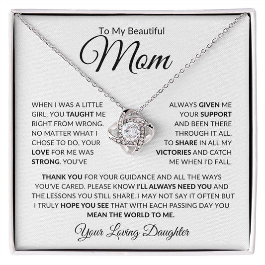 To My Beautiful Mom | You Mean The World To Me - Loving Daughter | Love Knot Necklace