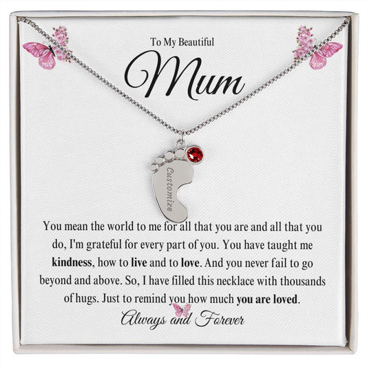 To My Beautiful Mum | You are Loved | Baby Feet Necklace and Birthstone - Gift for Mother's Day, Birthday, Holidays