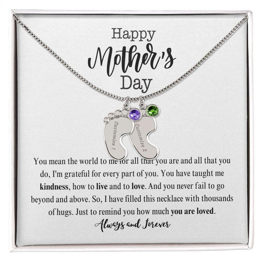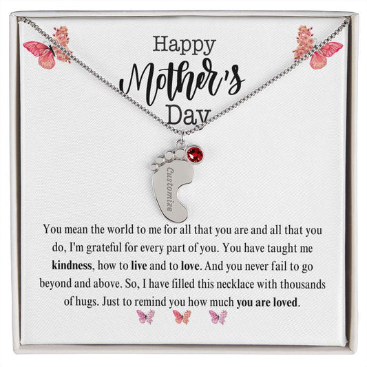 Happy Mother's Day | You are Loved | Baby Feet Necklace with Birthstone