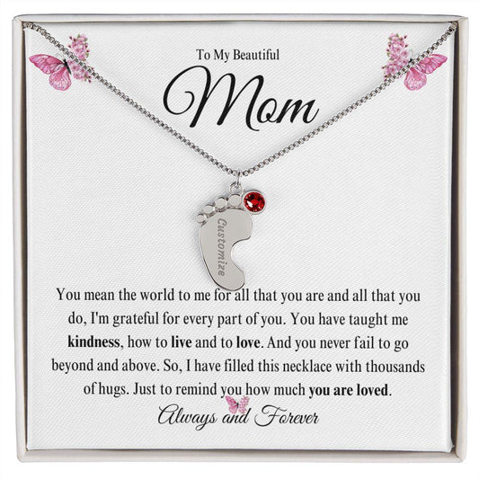 To My Beautiful Mom | You are Loved | Baby Feet Necklace with Birthstone - Gift for Mother's Day, Birthdays, Holidays