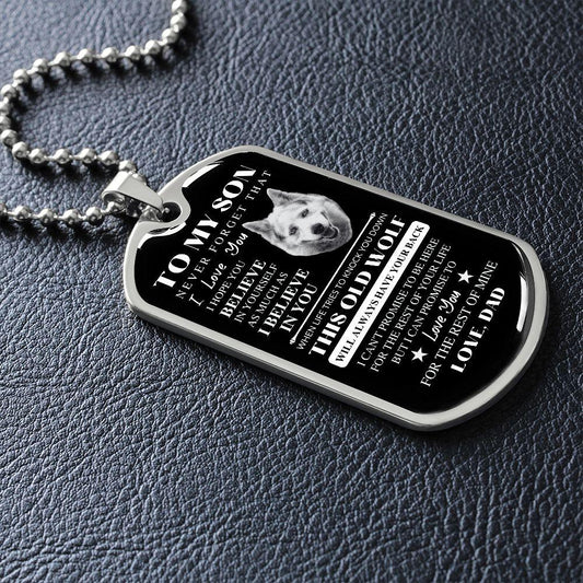 To My Son - Never Forget | Love, Dad | Dog Tag Wolf