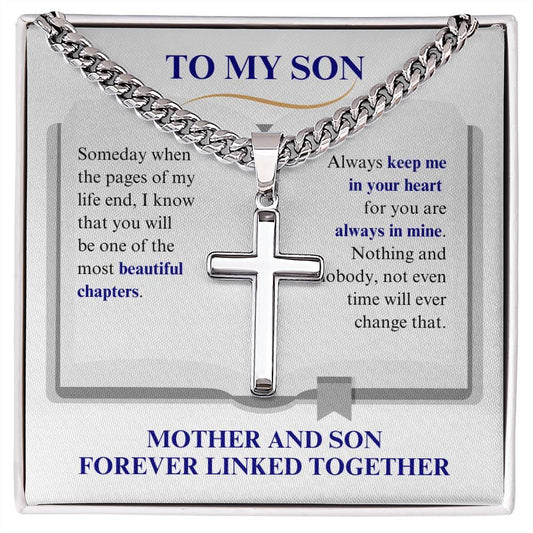 To My Son | Always in My Heart | Mom | Cuban Chain with Artisan Cross Necklace