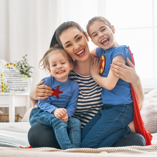 Mom | Your are My Sunshine - Daughter | Sunflowers Printed Heart Shaped Acrylic Plaque | Gift for Mother's Day, Birthdays, Holidays, Special Occasions
