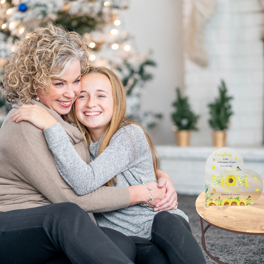 Mom | Your are My Sunshine - Daughter | Sunflowers Printed Heart Shaped Acrylic Plaque | Gift for Mother's Day, Birthdays, Holidays, Special Occasions