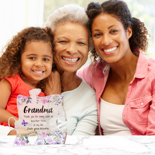 Grandma | Important Piece | Printed Acrylic Puzzle Plaque | Gift for Mother's Day, Birthdays, Holidays, Special Occasions