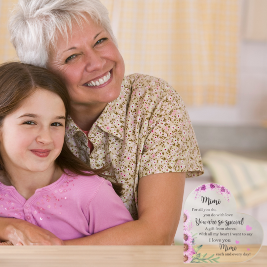 Mimi | You are so Special | Printed Heart Shaped Acrylic Plaque | Gift for Mother's Day, Birthday, All Occasions