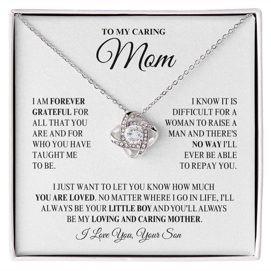To My Caring Mom | You are Loved | Love Knot Necklace - Gift for Mother's Day, Birthdays, Holidays