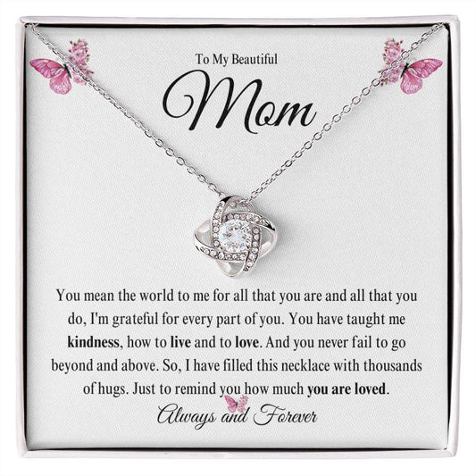 To My Beautiful Mom | You are Loved | Love Knot Necklace - Gift for Mother's Day, Birthdays, Holidays