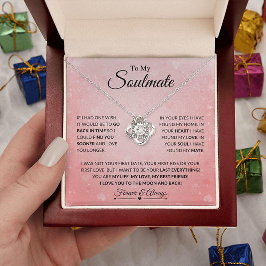 To My Soulmate | Love You To The Moon & Back | Love Knot Necklace - Gift for Wife, Fiancée, Girlfriend