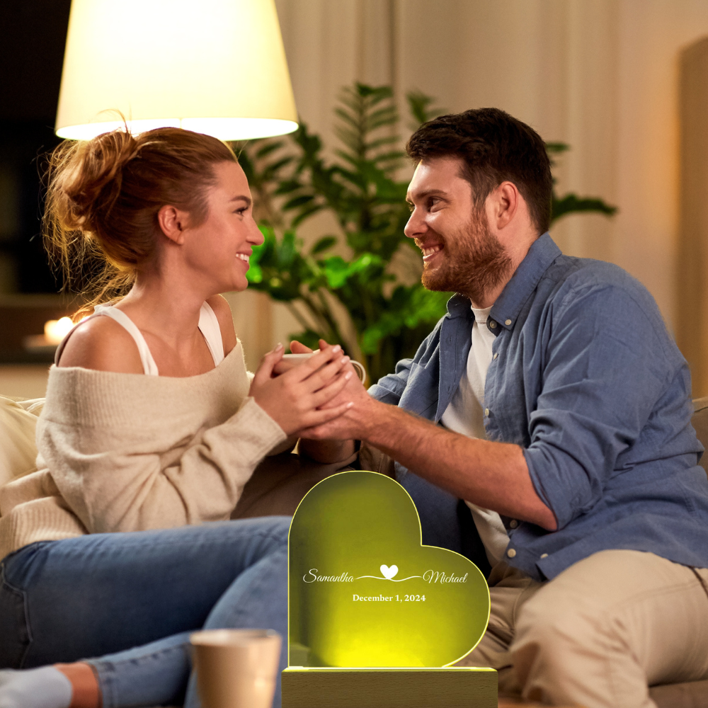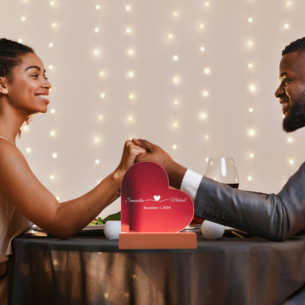 (TOP SELLER 🔥)Personalized Love Gift | Printed Heart Acrylic Plaque with LED Base