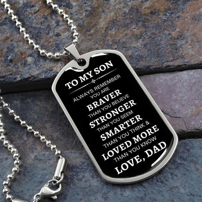 To My Son | Always Remember - Love, Dad (White Text Dog Tag)